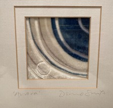 VINTAGE ABSTRACT TEXTILE ART PIECE SIGNED BOX FRAMED GALLERY WALL. Good condition- please see photos . Textile Devore piece . Titled and signed - illegible. Measures-31cm square z 5cm depth . Great for a gallery wall in a modernist styled home . Thanks for looking !!