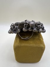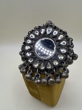 Vintage Afghan Kuchi Tribal Mirror Ring Dangle Bells Adjustable Statement Boho