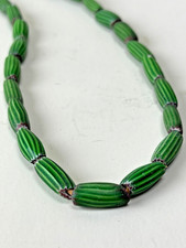 Vintage African Trade Beads Striped Oblong Glass Red & Green MELON Lot 78 Pcs