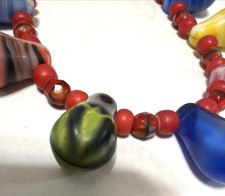 Vintage African Tribal Multicolor Handmade Bead Necklace 16"