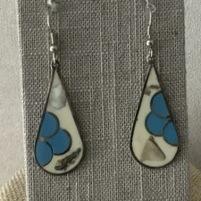 • Inlay: Abalone shell and turquoise colored design. The combination creates a striking southwestern style design. • Shape: Teardrop.
