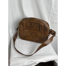 Vintage American Tourister flight bag crafted in a rich brown textured faux leather with a classic retro silhouette. This versatile carry-on features a spacious main compartment with a secure zipper closure and a convenient front slip pocket for quick access to essentials. Designed with durability in mind, it includes protective feet on the bottom and an adjustable shoulder strap for comfortable transport. The iconic tri-color luggage tag adds an authentic touch to this timeless travel accessory. See photos for accurate condition Measurements: • Width: 14" • Height: 11" • Depth: 5" • Strap Drop: Adjustable up to 18" approx.
