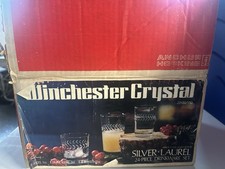 Vintage Anchor Hocking 24 Pc Silver Laurel Drinkware Set Glasses Tumbler Etched