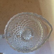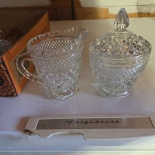 This vintage Anchor Hocking Sugar Bowl and Lid in the Wexford Pattern is a lovely addition to any collection of mid-century modern glassware. Made in America in the 1940s/1950s/1960s, this clear depression glass bowl features a round shape and a classic Anchor Hocking design. The set includes a decorative lid, making it perfect for all occasions and adding a touch of vintage charm to any table setting.