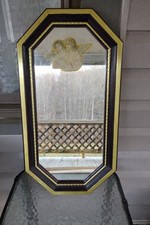Vintage Angel Wall Mirror Octagon Gold Black Frame Religious Decor 23.5”