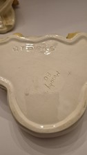 The Vintage Arnel Hen On Chick's Covered Dish is a charming piece of decorative cookware made of ceramic, featuring a glossy white finish. This covered dish from Arnel has a unique design with a hen sitting on top of a chick, adding a touch of whimsy to any dining table. With its vintage appeal and hand wash only care instructions, this original piece is perfect for collectors or those looking to add a touch of rustic charm to their kitchen decor.