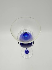 Beautiful decorative candle holder made from art glass featuring a striking cobalt blue center with clear glass accents. The tall elegant design makes it a great decorative centerpiece. • Cobalt blue stem with clear glass.