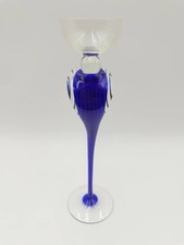 Vintage Art Glass Candle Holder Blue Cobalt Stem Murano Style 12”