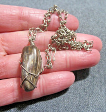VINTAGE ARTISAN HAND CRAFTED MARBLED BROWN STONE SILVER TONED METAL NECKLACE