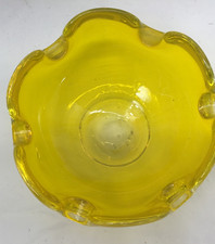 Vintage Ashtray Hand blown Sun yellow Art glass Ashtray