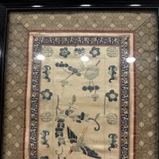 Vintage Asian Framed Embroidered Silk Wall Hanging Abt. 25” X 10” Birds See Pics