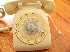 VINTAGE AT&T DESKTOP ROTARY DIAL TELEPHONE BEIGE WORKS GREAT !!!
