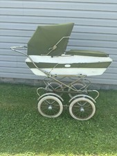 Vintage baby carriage made in Italy. Green and White in color