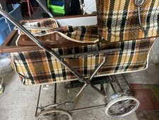 The Vintage Baby Pram Plaid is a charming and unique accessory for traditional strollers. Made with high-quality materials, this plaid adds a classic touch to any baby pram, making it a stylish choice for parents looking to add a vintage flair to their child's transportation. The timeless design and durable construction make it a practical and stylish addition to any baby's gear collection. This stroller comes with accessories extra baby mattress and other accessories. It has one small damaged stop on top see pictures.