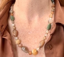 Vintage Beggar's Beads Polished Agate Stone Necklace - 24”