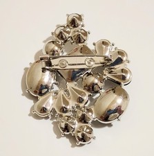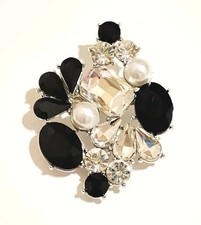 COMBINED SHIPPING: Pay flat rate shipping on one item, and shipping is free on additional items with flat rate shipping. Vintage Crystal Faux Pearl Brooch Large Black & White Asymmetrical Statement Very nice quality, and in excellent condition. Absolutely brilliant sparkle! Round, oval, teardrop, and emerald cut crystals. Hook closure. Please don't hesitate to contact me with any questions you may have. Thanks for stopping!
