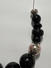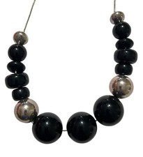 A timeless accessory featuring shiny black and silver beads. Adjustable chain for a comfortable fit, adding elegance to any wardrobe. • Black and silver beads with a glossy finish • Adjustable chain for flexible length • Lightweight and easy to wear • Unique vintage design Minor scratches visible on some black beads. Condition: Pre-Owned Good