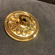 Thin brass a little twist to it but when screwed into place should sit ok see photos 8.5 cm diameter 4 cm drop