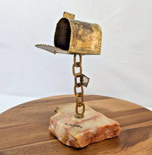 Vintage Brass Mailbox Sculpture on Onyx by John DeMott Signed & Dated 10"