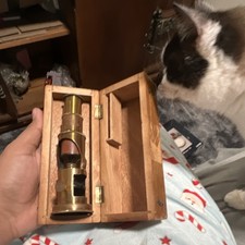 Vintage Brass Microscope Collectible in Wooden Case
