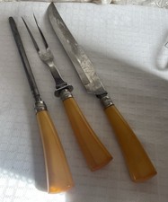 Vintage Butterscotch Bakelite Knife Fork Sharpener Serving Set additional preview