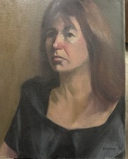 Vintage Canvas Painting Original Portrait Study Woman Signed OOAK