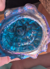 The Vintage Carnival Iridescent Aqua Blue Wheaton Southern Belle Art Glass Figurine is a beautifully crafted piece of Americana art glass. Standing at 5.5 inches tall, this elegant figurine features a Victorian style design with a blue color and bell theme. Made of glass, this original production by Carnival showcases intricate details of a girl, adding a touch of nostalgia to any collection of decorative pottery and glassware. The iridescent aqua blue color and art glass production style make this figurine a charming addition to any home decor.