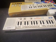 Untested missing battery cover box is rough has manual The Vintage Casio PT-1 Electronic Mini Keyboard is a small, cream-colored keyboard made in Japan in the 1980s. With 29 keys and a synth action, this electronic keyboard is perfect for beginners looking for a versatile instrument. The keyboard features built-in speaker, battery-powered option, and built-in effects, making it a convenient choice for musicians on the go. The compact size of 4 inches in height and 13 inches in width makes it easy to transport and play in various settings. Complete with an instrumental book, this Casio PT-1 model is a nostalgic piece of musical history.