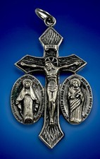 Vintage Catholic Jesus Mary Joseph Indulgence Silver Tone Crucifix