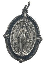 Vintage Catholic Miraculous Mary Worn SilverTone Religious Medal