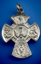 Vintage Catholic Sterling Silver 5 Way Cross Medal, 2.2 Grams Silver