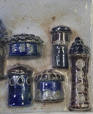 The product is a set of vintage ceramic old-fashioned wall plaques from the 1970s, handmade by artisans. These wall art pieces are unique and retro, adding character and charm to any room. Perfect for collectors of vintage decor or those looking to add a touch of nostalgia to their home, these handmade plaques offer a one-of-a-kind aesthetic that harkens back to a bygone era.1221