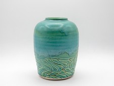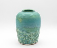 Vintage Ceramic Table Lamp Base - Blue-Green Incised Wave Design Studio Pottery