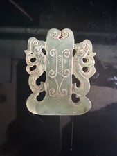 Vintage Chinese Nephrite Good Luck Charm. This antique green nephrite charm originates from China and is post-1940 in age. The unit quantity is one, with the maker being unknown. This unit is a unique addition to any collection of Asian antiques, with its traditional design symbolizing good luck. Perfect for collectors or those seeking a touch of Eastern culture in their home décor.
