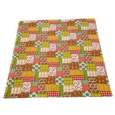 This vintage Christmas tablecloth features a cheerful patchwork pattern with bells, poinsettias, candy canes, and vibrant holiday colors. Its retro charm and quilted-style design make it an eye-catching addition for festive gatherings, adding warmth and nostalgia to your home decor during the holiday season. Durable fabric ensures long-lasting use. Measures approximately 52 x 52 inches. Condition: Pre-Owned Good minor wear overall EUC