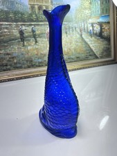 vintage cobalt blue pressed glass decanter shaped like a fish