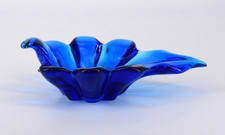 Vintage Cobalt Handblown Studio Glass Dish Leaf- or Bird-Shaped 8"