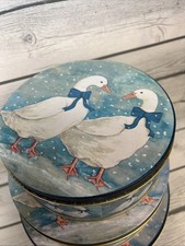 Vintage Country Goose Blue Ribbon Bow Nesting Tin Kitchen Canister Set 3 Decor