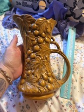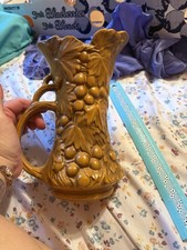 Vintage Dark Yellow McCoy Pottery Grape Pattern Pitcher Vase #641 9.25"H