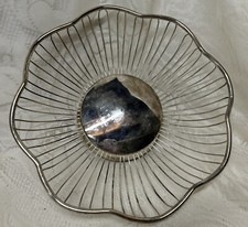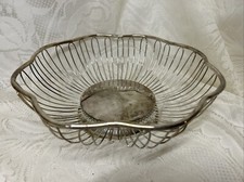 Vintage Deco Silver Plate Wire Bread Fruit Basket With Scalloped Edges MCM
