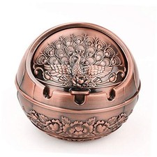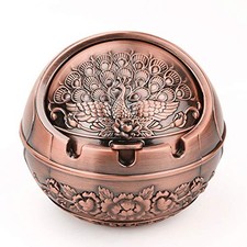 Vintage Decorative Windproof Ashtray with Lid for Peacock-Red Copper