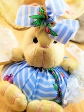 Vintage Easter Bunny Rabbit Pin Cushion Blue Stuffed Plush with Poseable Ears