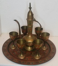 Vintage Etched Brass Persian Style Tea Set 6 cup set Goblets