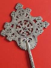 Blessing crosses like this are traditionally held by priests in the Ethiopian Orthodox Church to bestow blessings upon the faithful. This is a stunning, authentic Ethiopian Coptic Orthodox Blessing Hand Cross, featuring an exceptionally intricate and rare design.