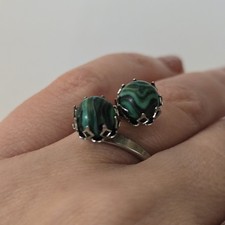 Vintage Faux emerald Malachite Silver cocktail ring size 6.5/7 Western