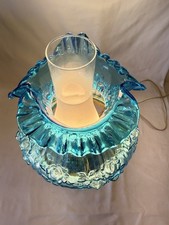 Vintage Fenton 1967-1973 Colonial Blue Cabbage Rose Glass Lamp With Marble Base