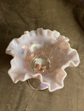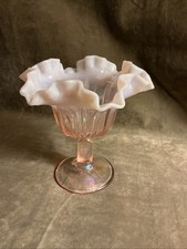 Vintage Fenton art glass pink Opalescent cactus pattern compote/candy dish