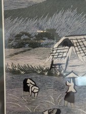 Vintage Finished Embroidery Asian Art Matted And Framed