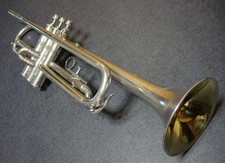It retains 99% of its original silver plating with no dents, and the pistons and slides function perfectly with airtight seals. The trumpet produces a rich, bold sound that is sure to impress. Included are the original case, key, and lyre.