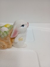 Vintage Frankel Easter Bunny Pulling Wagon White Ceramic Easter Egg Coin Bank